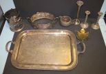 Silverplate Tray, Candlesticks, Vase, and Casserole Frame Silverplate Tray, Candlesticks, Vase, and Casserole Frame Silverplate Tray, Candlesticks, Vase, and Casserole Frame Silverplate Tray, Candlesticks, Vase, and Casserole Frame