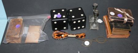 Wood Dice, Mini Candlesticks, Mini Size Books, Glasses, and Mandelin wood dice 2"sq., Mandelin 5". Wood Dice, Mini Candlesticks, Mini Size Books, Glasses, and Mandelin wood dice 2"sq., Mandelin 5".