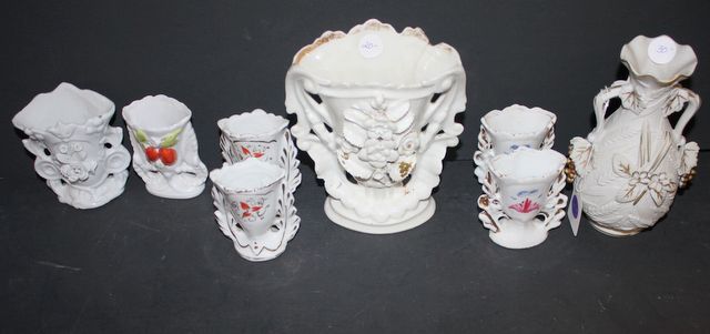 193 Six Miniature Porcelain Vases and Bulbous Parian Vase Vases 3"h., vase 6" (cracked)
