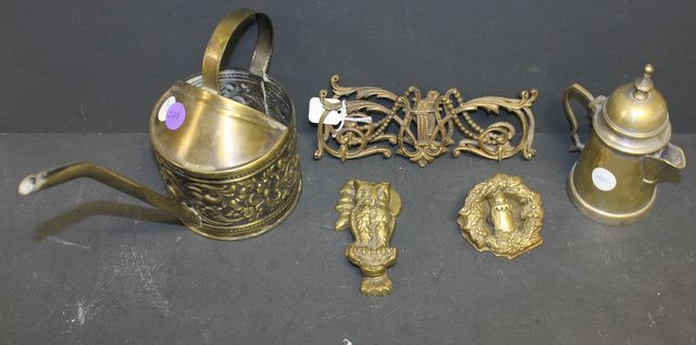 248 Small Brass Door Knockers, Teapot, Water pot, and Mounts Small Brass Door Knockers, 6" Teapot, 7" Water pot, and Mounts