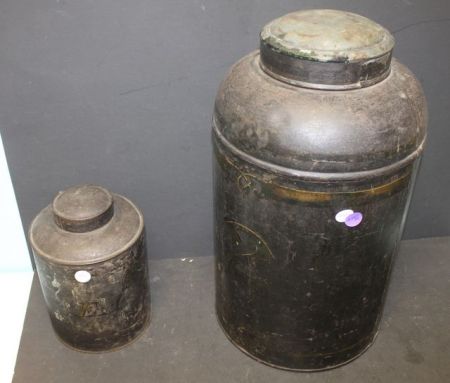 255 Two Antique Tin Canisters 9", 18"h.