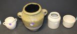 Pottery Two Handle Vase and Three Other Pottery Pieces Vase 9"h. Pottery Two Handle Vase and Three Other Pottery Pieces Vase 9"h.
