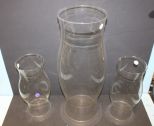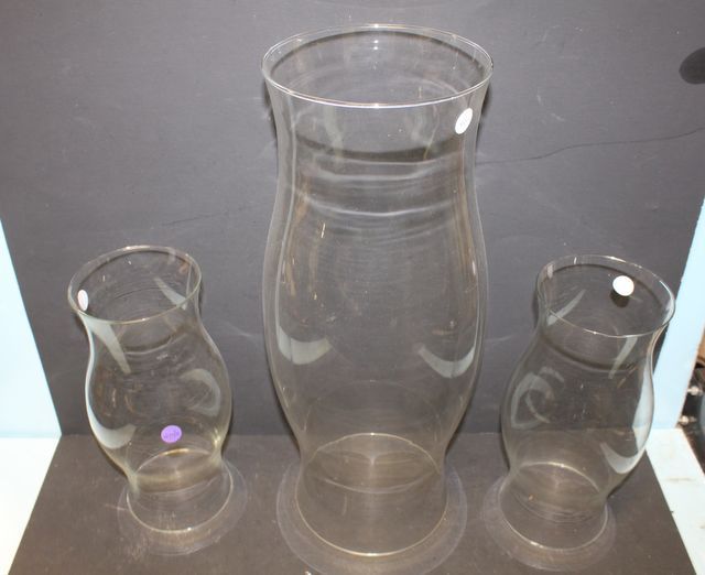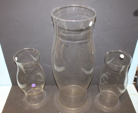 Three Glass Hurricane Shades 11", 17"h. Three Glass Hurricane Shades 11", 17"h.