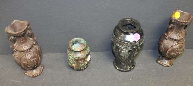 Four Decorative Metal Vases 3" - 7"h. Four Decorative Metal Vases 3" - 7"h.
