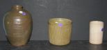 Pottery Vase, Green Pottery Pot, and Small Crock Jar Pottery Vase 9"h., Green Pottery Pot 5"h. 5"dia., and Small Crock Jar 5"h. Pottery Vase, Green Pottery Pot, and Small Crock Jar Pottery Vase 9"h., Green Pottery Pot 5"h. 5"dia., and Small Crock Jar 5"h.