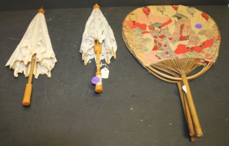 Two Doll Umbrellas and Two Oriental Fans Two Doll Umbrellas and Two Oriental Fans