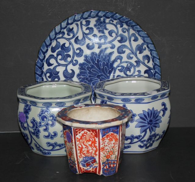 Imari Style Flower Pot, Octagon Flower Pots, and Blue and White Plate Imari Style Flower Pot 5"dia., 4"h., 2" - 5" dia.Octagon Flower Pots, 10" Blue and White Plate Imari Style Flower Pot, Octagon Flower Pots, and Blue and White Plate Imari Style Flower Pot 5"dia., 4"h., 2" - 5" dia.Octagon Flower Pots, 10" Blue and White Plate