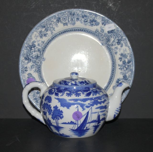 352 10" Stoneware Plate and Teapot 9"dia., 4"h. Teapot