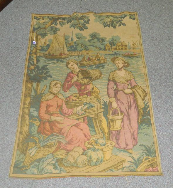 Large Wall Tapestry of Peasants 34"w., 50"h. Large Wall Tapestry of Peasants 34"w., 50"h.