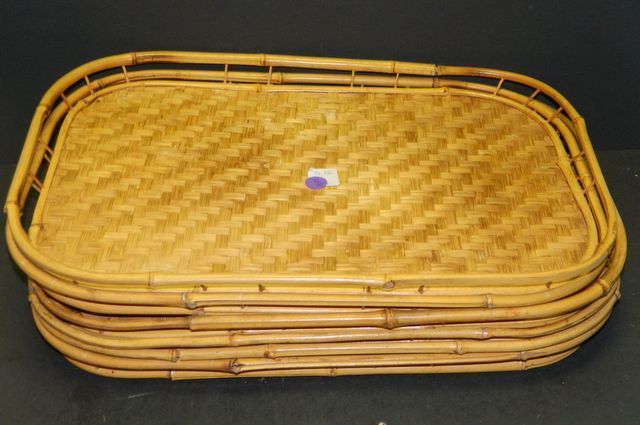 Five Oval Rattan TV Trays Five Oval Rattan TV Trays