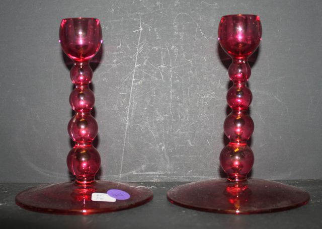 Pair of Pink Glass Candlesticks 6"h. Pair of Pink Glass Candlesticks 6"h.