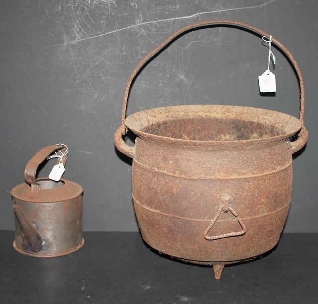 Iron Stew Pot and Tin Teapot Pot 9"dia. Iron Stew Pot and Tin Teapot Pot 9"dia.