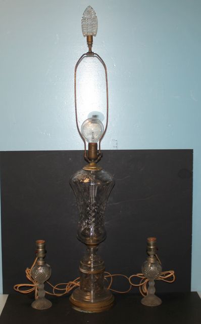 Cut Glass Lamp, Pair of Press Glass Boudoir Lamps lamp 41"h., Lamps 10"h. Cut Glass Lamp, Pair of Press Glass Boudoir Lamps lamp 41"h., Lamps 10"h.