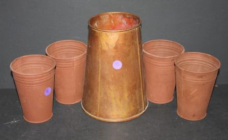 Six Painted Buckets and One Brass Bucket Six Painted Buckets and One Brass Bucket