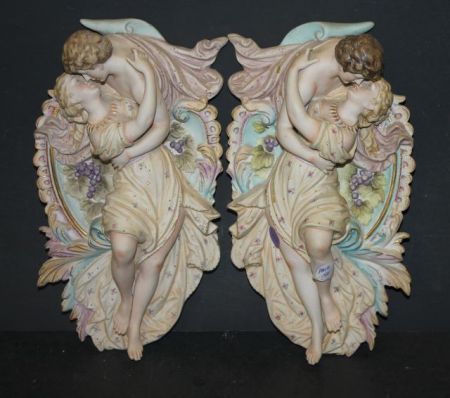 602 Pair of Handpainted Porcelain Figural Wall Plaques