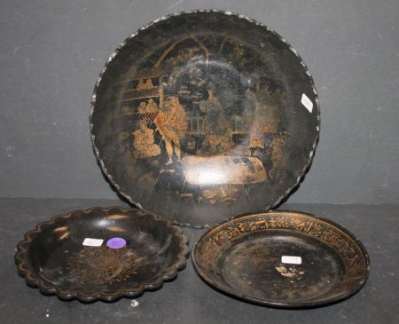 Black Stenciled Bowl and Two Plates Black Stenciled Bowl and Two Plates