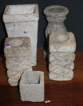 800 Group of Concrete Planters Two Columns, Plant stand, two planters