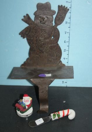Metal Snowman Hanger and Christmas Items Metal Snowman Hanger and Christmas Items