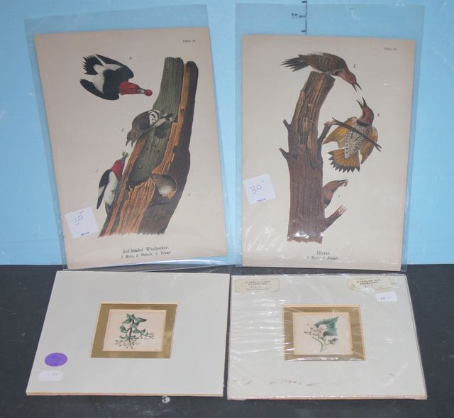 4 Lithographs Red-headed woodpecker, flicker, and flowers. 4 Lithographs Red-headed woodpecker, flicker, and flowers.