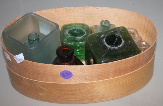Wood Container with Glass Inkwells Wood Container with Glass Inkwells
