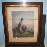 870 Abendgebet Evening Pray Print in carved walnut frame; 25" w., 29" h.