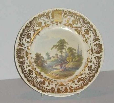 Derby scene "Near Worcester" - gold leaf plate country scene - 8 1/2" round Derby scene "Near Worcester" - gold leaf plate country scene - 8 1/2" round