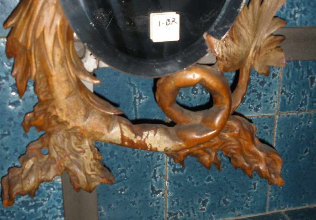 Ornately grotesque carved dragon surrounding an oval beveled mirror - 22" tall by 13" wide Ornately grotesque carved dragon surrounding an oval beveled mirror - 22" tall by 13" wide