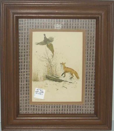 Small framed picture of fox with pheasant Small framed picture of fox with pheasant