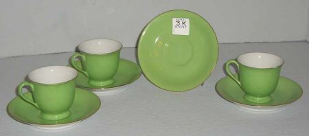 7 pc. of Noritake 3 demi cups & 4 demi saucers, green. 7 pc. of Noritake 3 demi cups & 4 demi saucers, green.