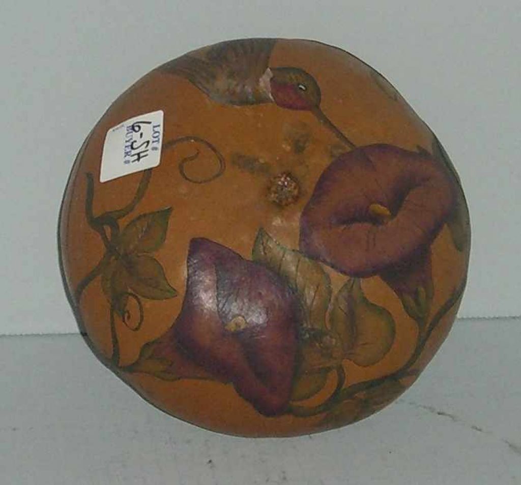 Gourd with hand painted hummingbird with flowers - 6" round by 3" tall Gourd with hand painted hummingbird with flowers - 6" round by 3" tall