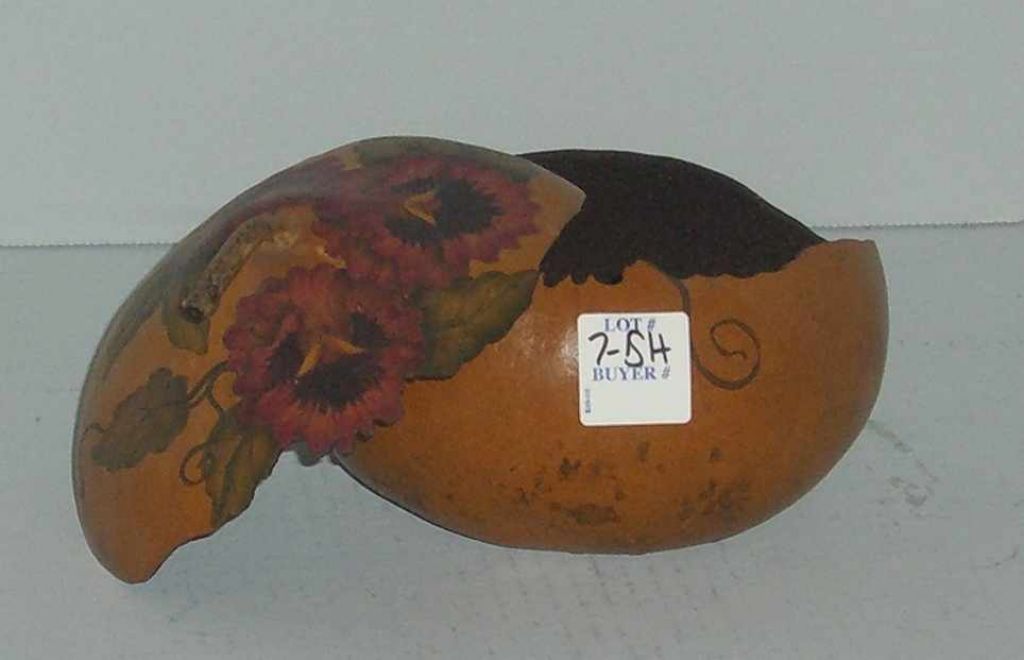 Gourd with hand painted flowers - 5" round by 4" tall Gourd with hand painted flowers - 5" round by 4" tall