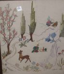 Small fire screen with needlework design of deer in woods - 19" width x 26" tall Small fire screen with needlework design of deer in woods - 19" width x 26" tall
