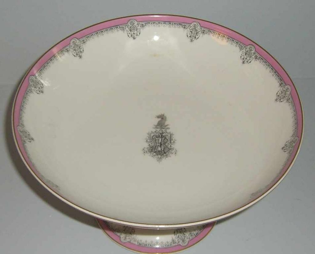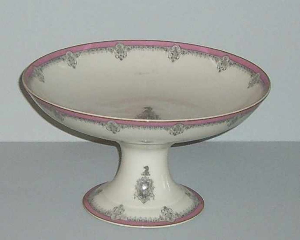 Gold & pink trim Paris compote with shield design - marked Ch. Pillivuyt & Co Paris Exp 1867 - 9 1/2" round by 5 1/2" tall Gold & pink trim Paris compote with shield design - marked Ch. Pillivuyt & Co Paris Exp 1867 - 9 1/2" round by 5 1/2" tall