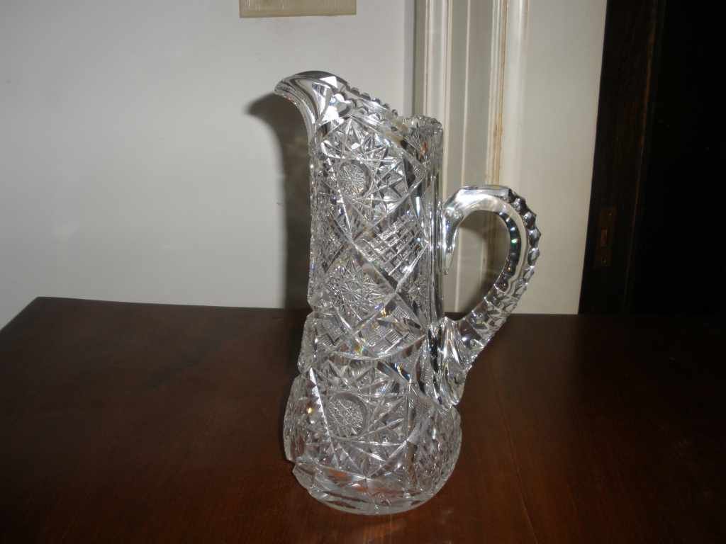 Cut glass pitcher pinwheel pattern - signed Libbey - 11 1/2" tall Cut glass pitcher pinwheel pattern - signed Libbey - 11 1/2" tall