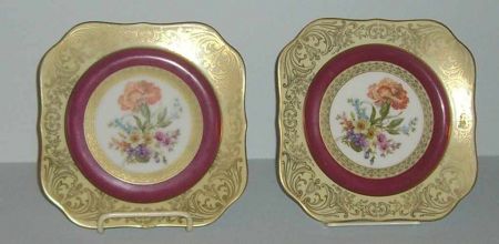 Pair of Bavarian gold trim plates with flowers in center - marked Bavaria Tirschenreuth - 7 1/2" square Pair of Bavarian gold trim plates with flowers in center - marked Bavaria Tirschenreuth - 7 1/2" square
