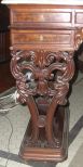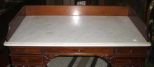Lady's Writing Desk, Pierced Carved Mahogany Legs, Center Drawer Has Writing Surface, Marble Top w/Mahogany Wooden Gallery. 41" width x 33 1/2" height x 23" deep Lady's Writing Desk, Pierced Carved Mahogany Legs, Center Drawer Has Writing Surface, Marble Top w/Mahogany Wooden Gallery. 41" width x 33 1/2" height x 23" deep