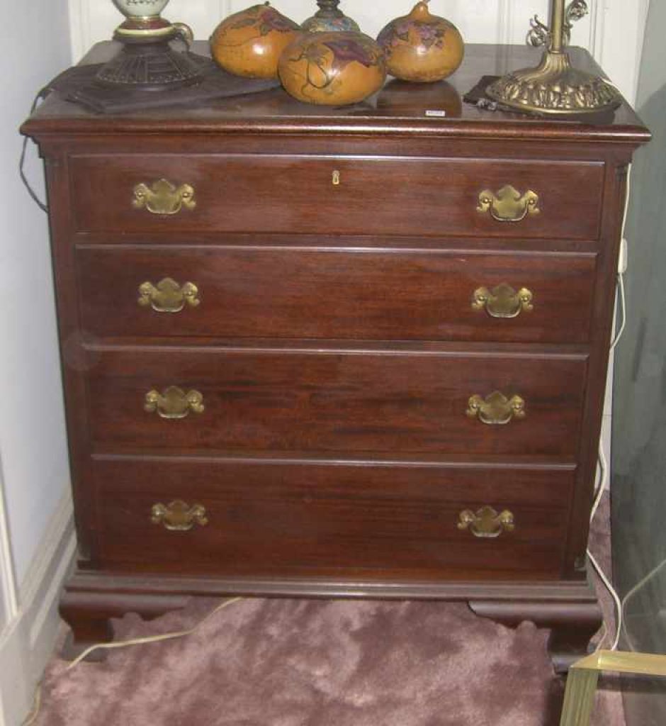 Mahogany four drawer chest of drawers with reeded quarter columns on front - 34" wide by 36" tall by 21" deep Mahogany four drawer chest of drawers with reeded quarter columns on front - 34" wide by 36" tall by 21" deep