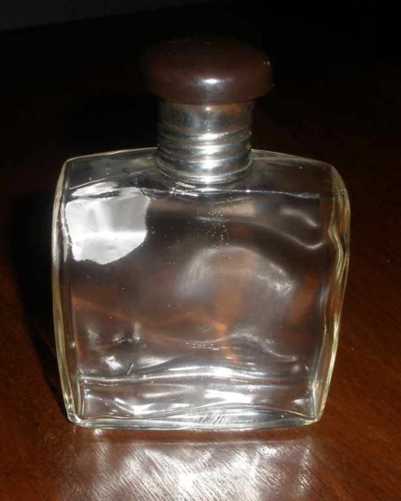 Clear perfume bottle. Top is marked Germany - 2 1/2" by 3/4" by 4" Clear perfume bottle. Top is marked Germany - 2 1/2" by 3/4" by 4"
