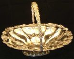 Footed silverplate, handled cake basket - floral engraved with decorative border Footed silverplate, handled cake basket - floral engraved with decorative border