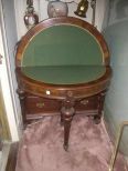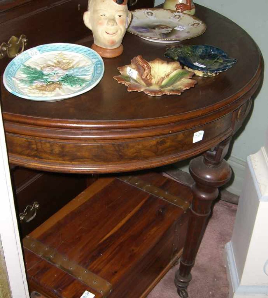 Victorian walnut 1/2 round folding top game table - 29" tall by 35" diameter (opened) Victorian walnut 1/2 round folding top game table - 29" tall by 35" diameter (opened)
