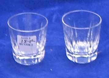 Pair of clear etched shot glasses. 2" tall Pair of clear etched shot glasses. 2" tall