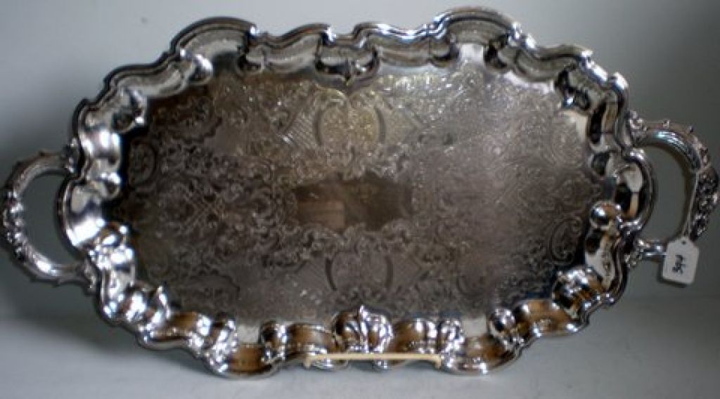 Serving tray - English Silver Manufacturing - 25 1/4" length x 12 1/2" width, engraved "Life Begins at 50 1962 MSGA Vicksburg" Serving tray - English Silver Manufacturing - 25 1/4" length x 12 1/2" width, engraved "Life Begins at 50 1962 MSGA Vicksburg"