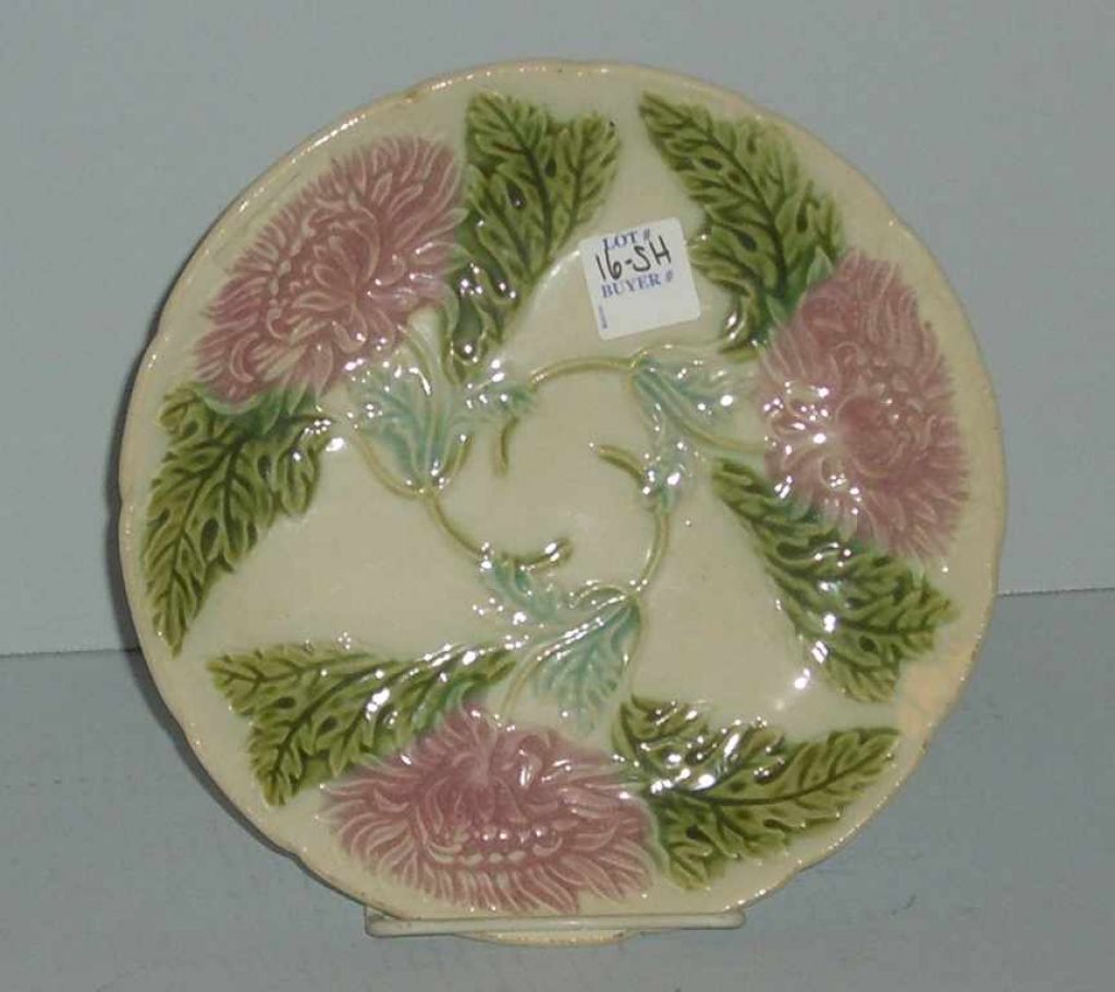Majolica style plate with mums - 8 1/2" round Majolica style plate with mums - 8 1/2" round
