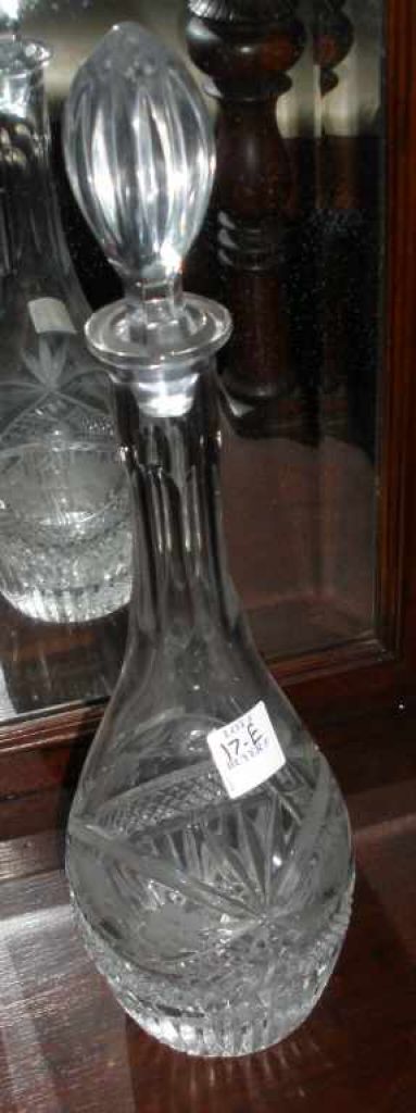 Cut glass decanter with etched grapes - 16" tall Cut glass decanter with etched grapes - 16" tall