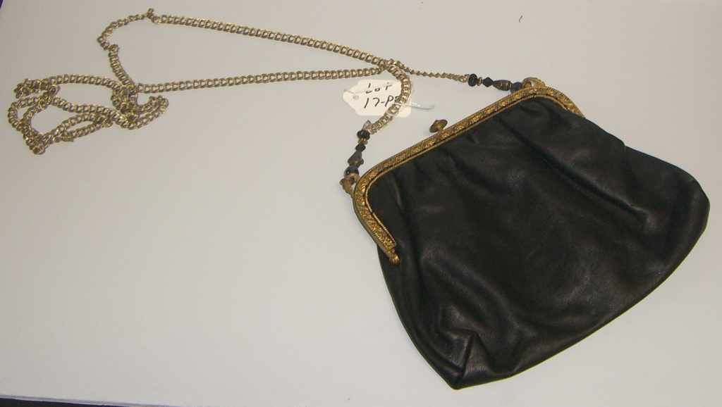 Black Leather Bag on Old Gilded Frame w/Jewels Black Leather Bag on Old Gilded Frame w/Jewels