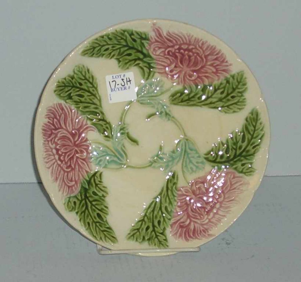 Majolica style plate with mums - 8 1/2" round Majolica style plate with mums - 8 1/2" round