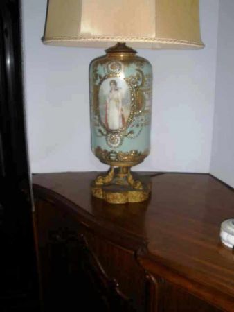 Nippon table lamp with Queen Louise motif & jeweled d Nippon table lamp with Queen Louise motif & jeweled d