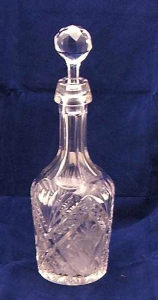 Cut glass decanter with cut flowers - 4" round by 13" tall Cut glass decanter with cut flowers - 4" round by 13" tall