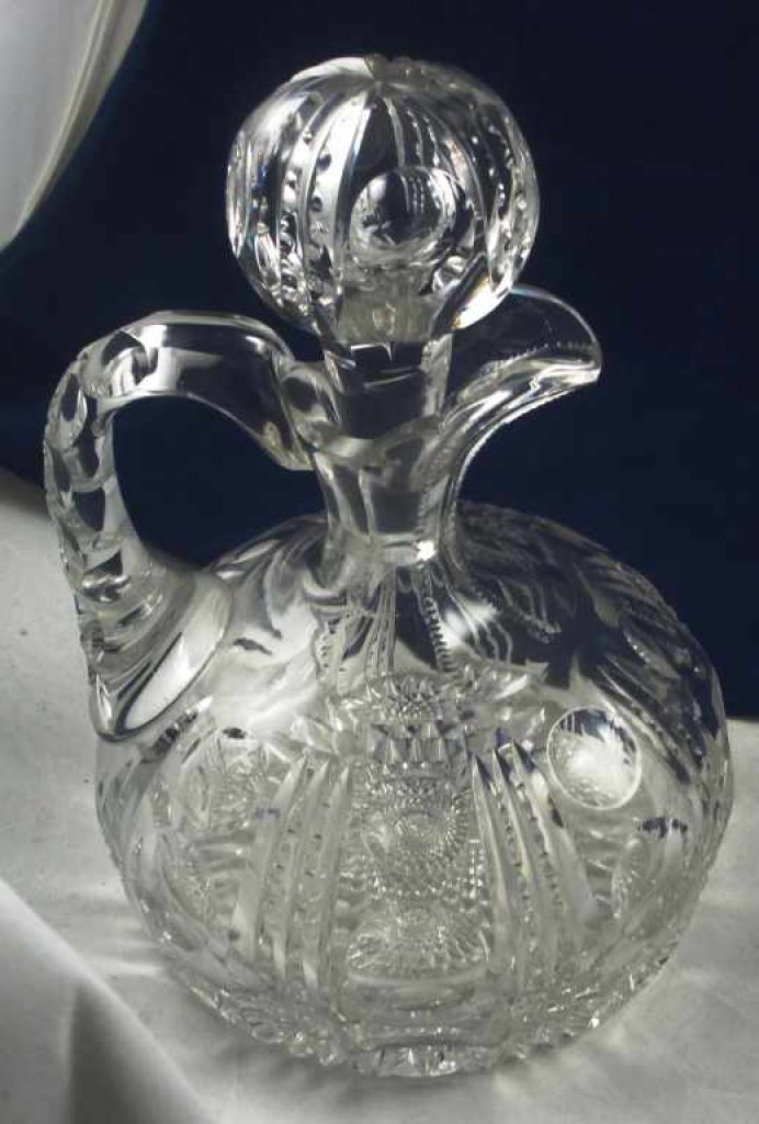 Heavy cut glass ships decanter - 6" round by 9" tall Heavy cut glass ships decanter - 6" round by 9" tall