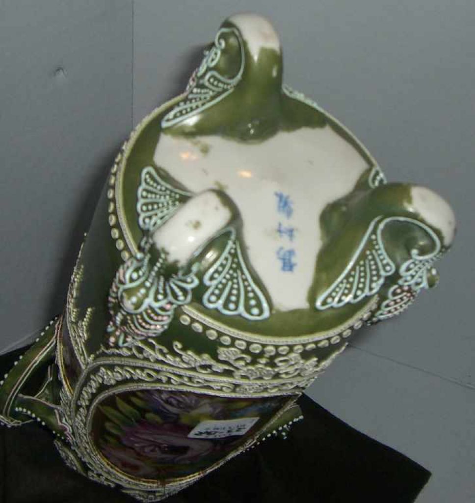 Japanese moriage cylinder vase w/ornate handles - 10 1/4" tall Japanese moriage cylinder vase w/ornate handles - 10 1/4" tall